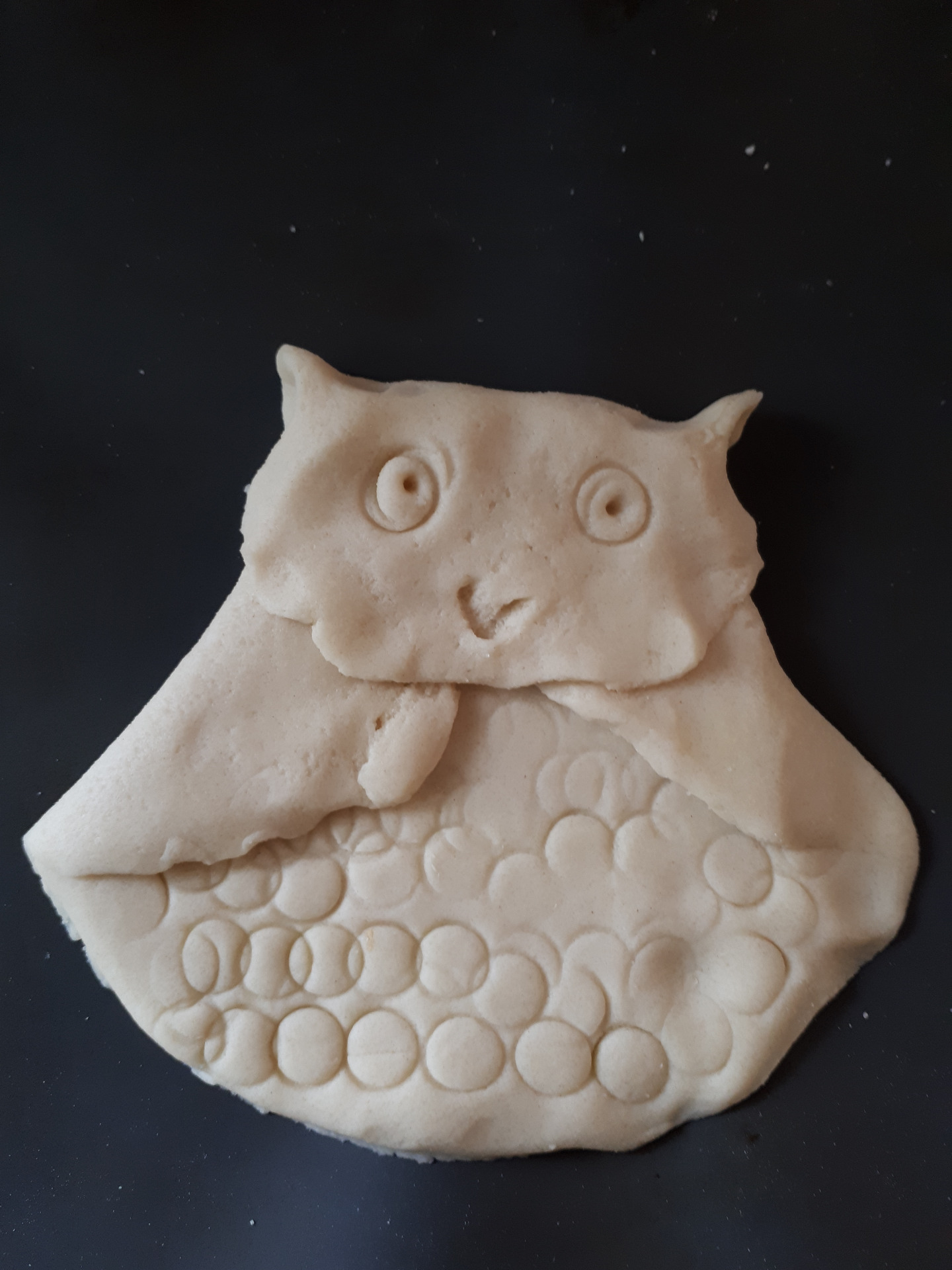 Idag har vi gjort en uggla av trolldeg. Nästa vecka kommer vi att måla den.