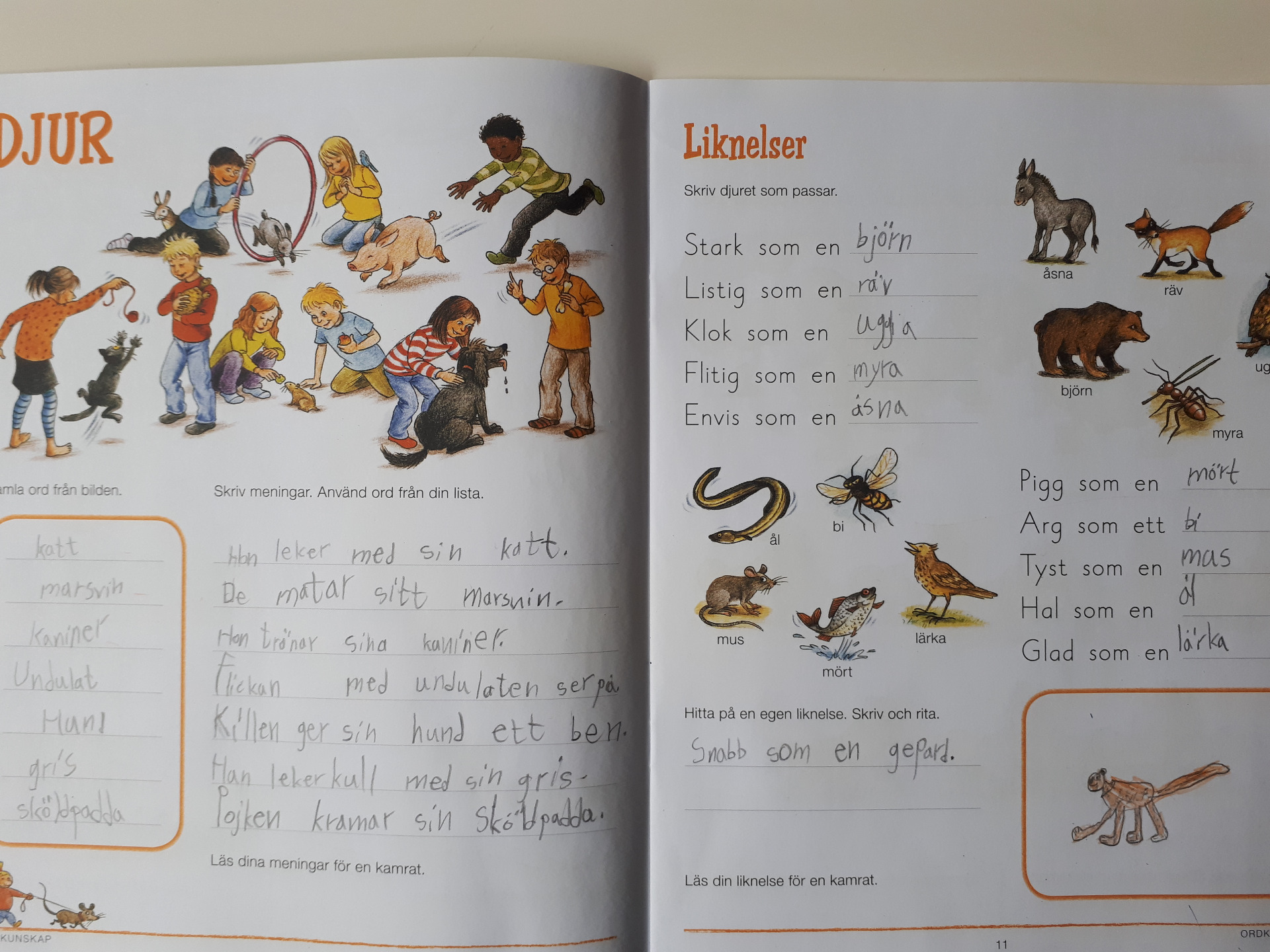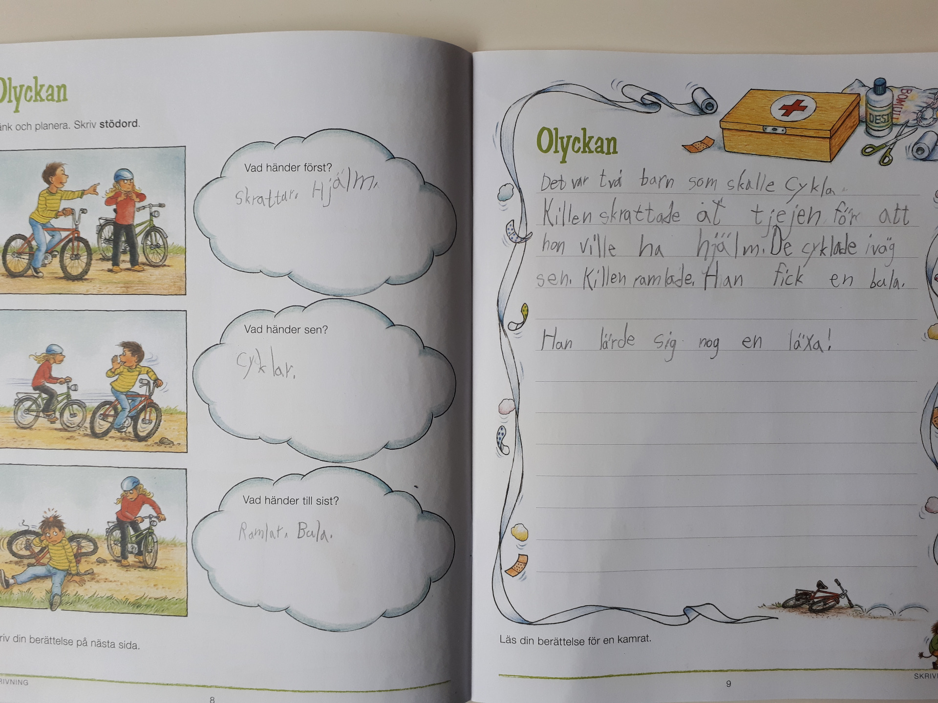 Idag har vi gjort sida 8-11 i Språkskrinet samt gjort veckans 5 ord och ritat bilder till.